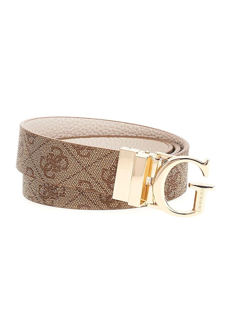 Caracteristici Culoare: maro inchis Material: piele ecologica Imprimeu: cu model Stil: lata Catarama: cu logo - metalic - reversibila Culoare elemente metalice: auriu Sistem inchidere: nit Compozitie Exterior: 100% poliester Dimensiuni Latime: 3 cm