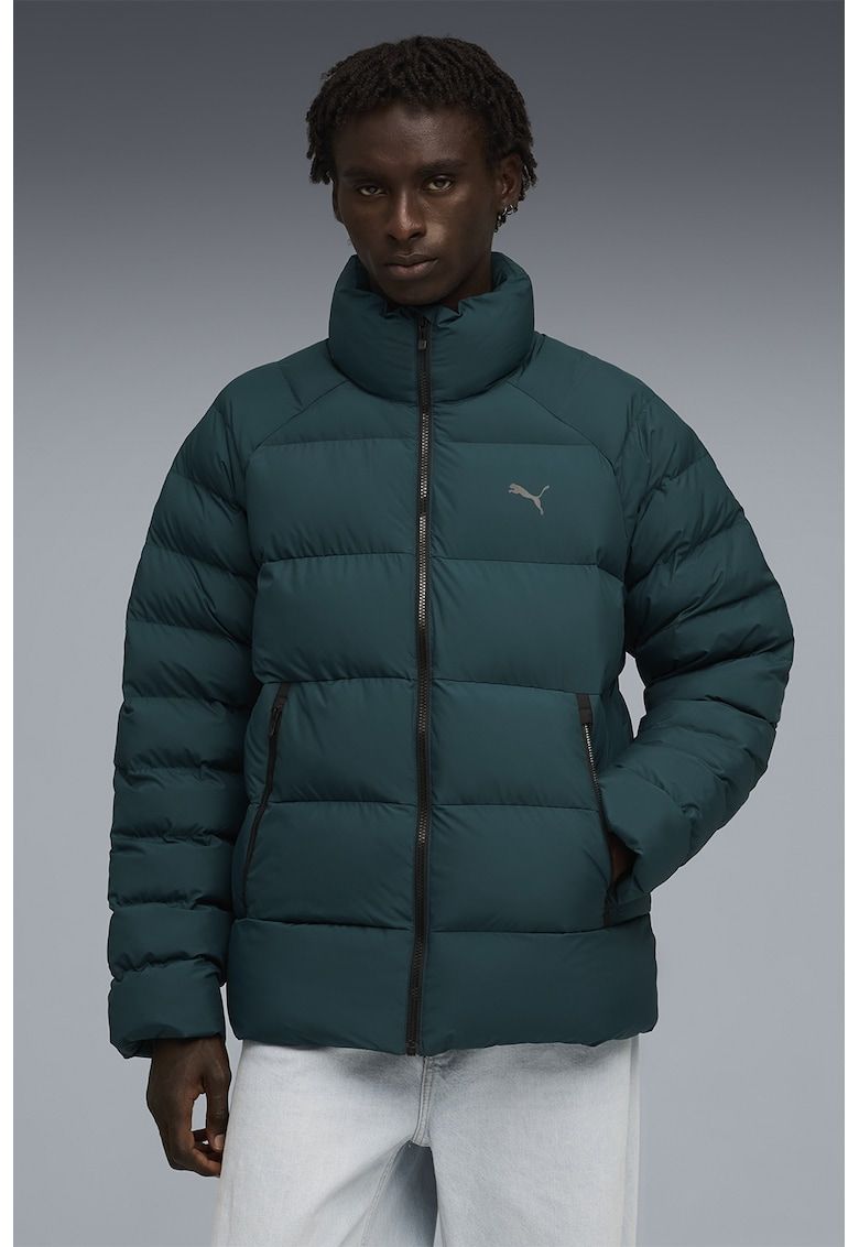 Caracteristici Tip produs: geaca Culoare: verde inchis Material: poliester Croiala: regular fit Imprimeu: logo Gluga: fara gluga Guler: inalt Lungime maneca: maneca lunga Buzunare: 2 laterale cu femoar Sistem inchidere: fermoar Compozitie Exterior: 100% poliester