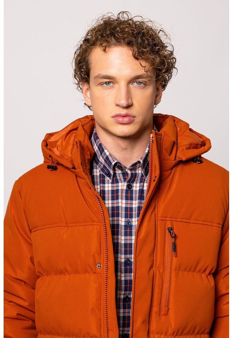 Caracteristici Tip produs: geaca Culoare: portocaliu mandarina Material: sintetic Croiala: regular fit Imprimeu: uni Gluga: cu gluga Lungime maneca: maneca lunga Buzunare: 2 cu clapa - unul cu fermoar Detalii: aspect matlasat Sistem inchidere: fermoar - capse Compozitie Exterior: 100% poliester