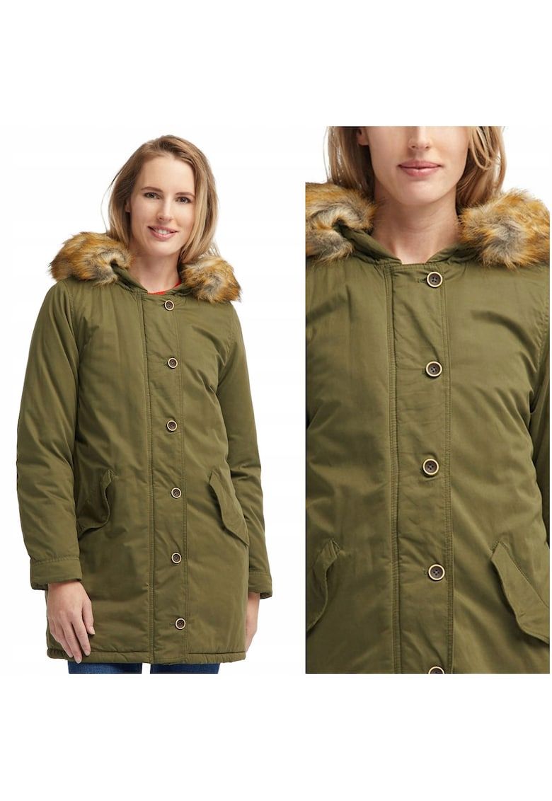 geaca dama de iarna - model parka - croiala regular fit - cu fermoar si nasturi - cu gluga si blanita detasabila - captusita si practica - buna pentru iarna si tinute zilnice - marimea m - verde