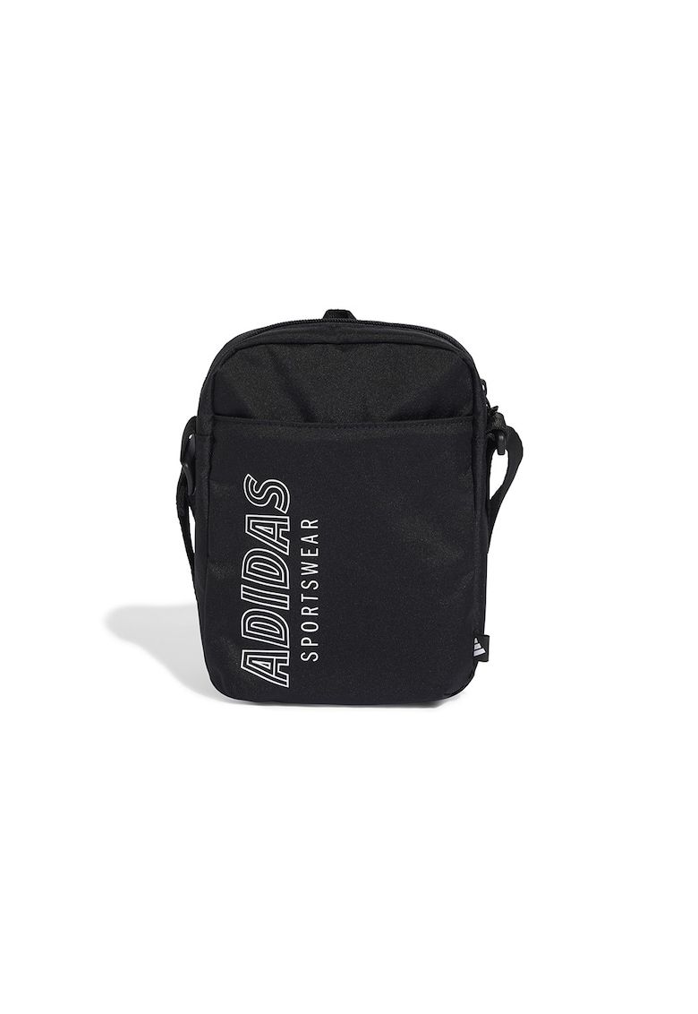 Caracteristici Culoare: alb - negru Stil: casual Imprimeu: logo Material: textil Model: crossbody Barete: 1 ajustabila Buzunare: 1 frontal cu fermoar Compartimente: 1 Sistem inchidere: fermoar Compozitie Exterior: 100% poliester reciclat Dimensiuni Dimensiune (cm): 21 x 15 x 5 cm