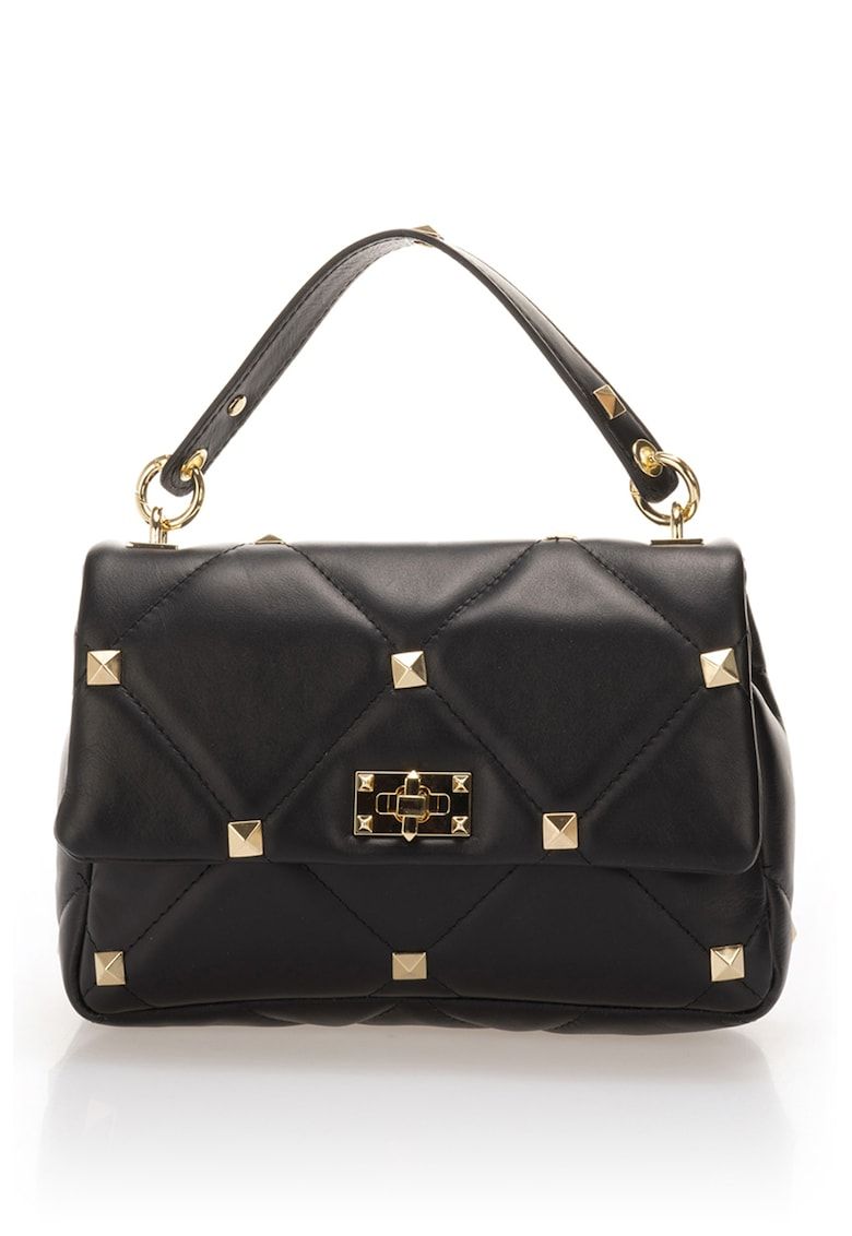 Caracteristici Culoare: negru Material: piele naturala Model: de mana Stil: casual Imprimeu: uni Maner: detasabil - in partea de sus Barete: detasabile - lant Buzunare: interioare - unul fara inchidere - pe partea din spate Sistem inchidere: sistem metalic - clapeta Detalii: tinte metalice - design matlasat Compozitie Exterior: piele Dimensiuni Dimensiune (cm): 18 x 26 x 8 cm Lungime drop bareta: 100 cm