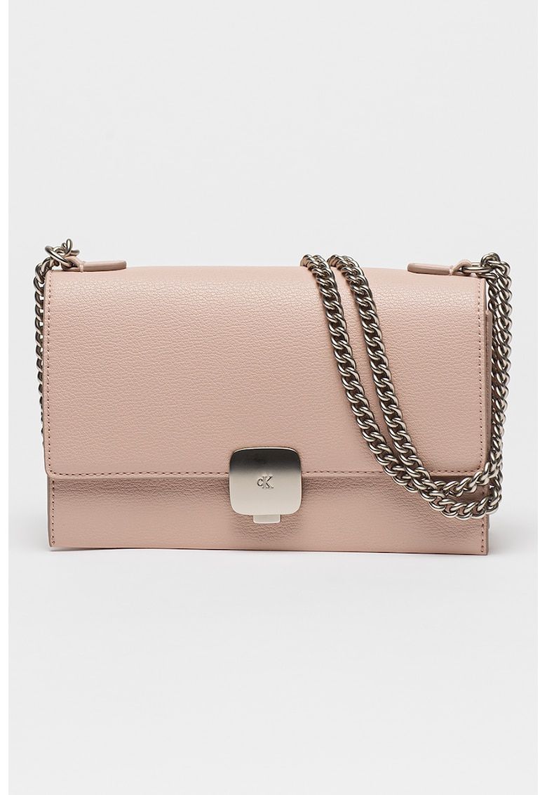Caracteristici Culoare: roz deschis Material: piele ecologica Model: crossbody Stil: casual Imprimeu: uni Barete: ajustabile - lant Buzunare: interior Compartimente: un compartiment Culoare elemente metalice: auriu Sistem inchidere: sistem metalic Compozitie Exterior: 51% poliester reciclat - 49%poliuretan Dimensiuni Dimensiune (cm): 11.5x21x5.5