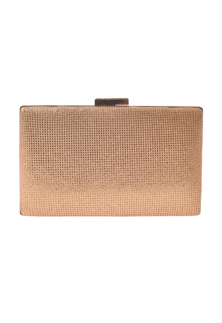 Caracteristici Culoare: auriu rose Material: poliester Model: plic Stil: elegant Imprimeu: uni Barete: detasabile Compartimente: 1 Culoare elemente metalice: auriu rose Sistem inchidere: sistem metalic Detalii: aplicatii din strasuri Compozitie Exterior: 100% poliester Dimensiuni Dimensiune (cm): 12x20x3