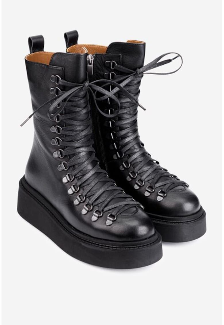 Caracteristici Tip: cu platforma Culoare: negru Material: piele naturala Stil: casual Varf: rotund Tip talpa: wedge Sistem inchidere: fermoar Compozitie Partea superioara: piele naturala Material interior: blanita sintetica