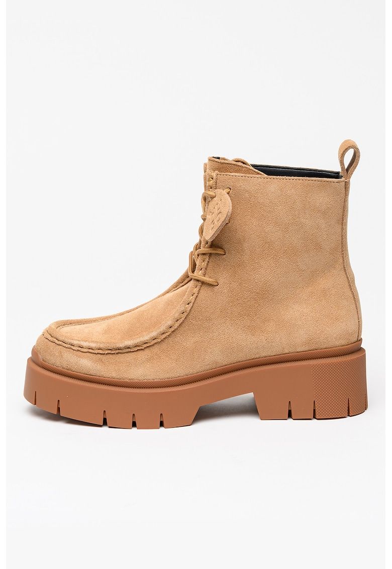 Caracteristici Tip: cu toc Culoare: maro camel Material: piele intoarsa Imprimeu: uni Stil: casual Varf: rotund Tip toc: masiv Culoare elemente metalice: auriu Sistem inchidere: siret Compozitie Partea superioara: piele intoarsa Material interior: alte materiale Material talpa: alte materiale Dimensiuni Inaltime toc: 3.5 cm