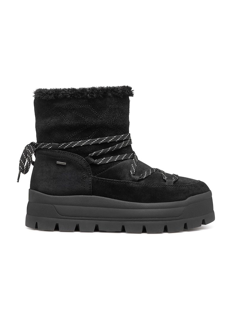 Caracteristici Tip: cu talpa joasa Culoare: negru Material: piele intoarsa Imprimeu: uni Stil: casual Varf: rotund Tip talpa: flatform Culoare elemente metalice: argintiu Sistem inchidere: fara inchidere Compozitie Partea superioara: piele intoarsa Material interior: alte materiale - textil Material talpa: alte materiale