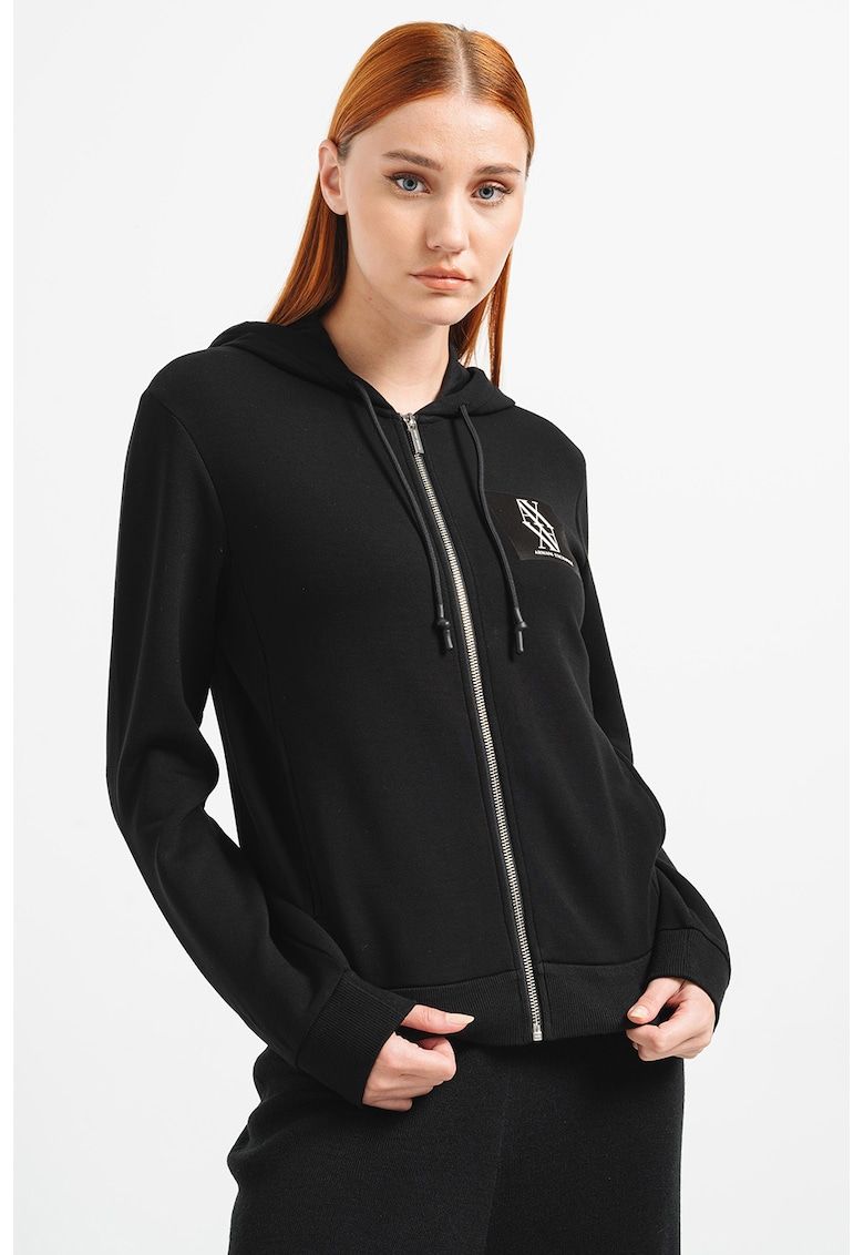 Caracteristici Tip produs: hanorac Culoare: alb - negru - negru stins Imprimeu: uni Croiala: regular fit Sistem inchidere: fermoar Material: sintetic Lungime maneca: maneca lunga Compozitie Exterior: 47% viscoza - 46% poliester - 7% elastan Info model Modelul poarta un produs de marimea S. Marimi model: 175 cm inaltime - 80 cm bust - 64 cm talie - 90 cm sold
