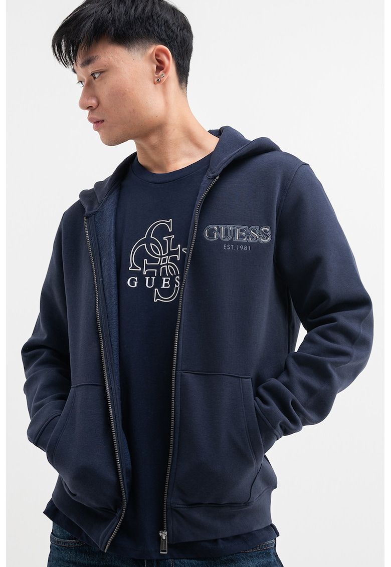 hanorac cu fermoar si logo brodat pe piept