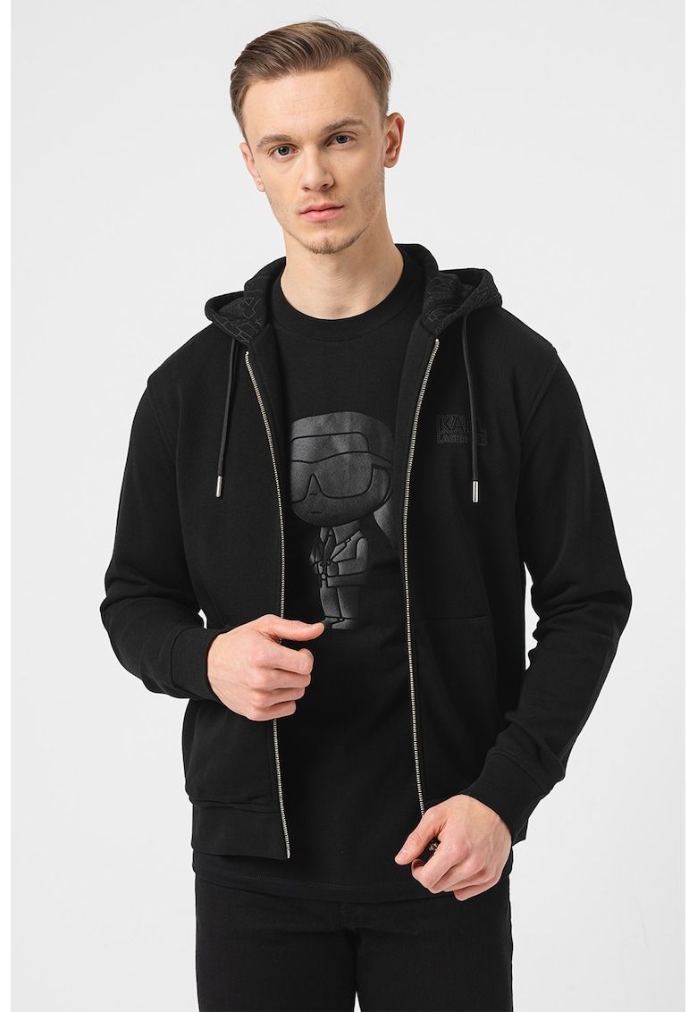 Caracteristici Tip produs: hanorac Culoare: negru Imprimeu: uni - logo Material: sintetic - bumbac Croiala: regular fit Sistem inchidere: fermoar Buzunare: frontale Maneci: cu mansete Lungime maneca: maneca lunga Compozitie Exterior: 87% bumbac - 13% poliester Info model Modelul poarta un produs de marimea M. Marimi model: 191 cm inaltime - 99 cm bust - 80 cm talie - 101 cm sold