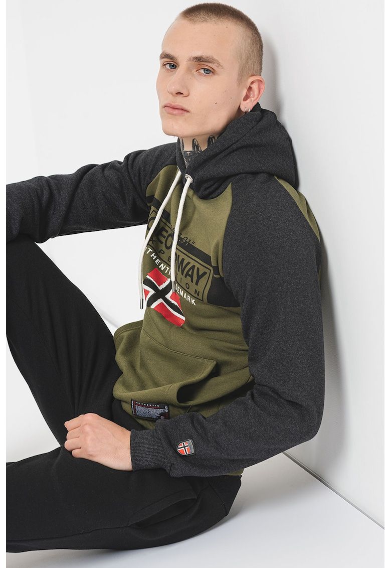 Caracteristici Tip produs: hanorac Culoare: verde masliniu - gri antracit Imprimeu: logo Material: poliester - bumbac Croiala: regular fit Sistem inchidere: fara inchidere Buzunare: kangaroo Maneci: raglan Lungime maneca: maneca lunga Compozitie Exterior: 65% bumbac - 35% poliester Info model Modelul poarta un produs de marimea M. Marimi model: 188 cm inaltime - 98 cm bust - 78 cm talie - 103 cm sold