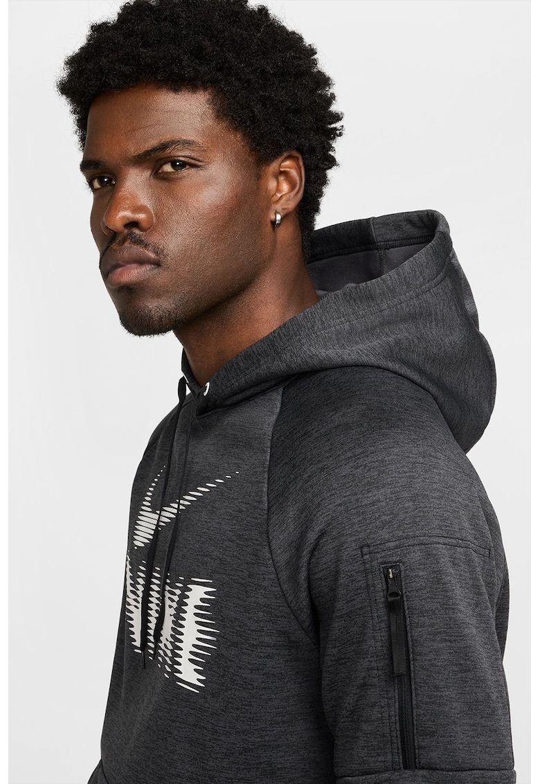 Caracteristici generale Culoare: gri carbune Imprimeu: logo Sport: fitness Lungime maneca: maneca lunga Croiala: regular fit Material: fibre sintetice Detalii: buzunar cu fermoar - buzunar kangaroo Detalii material Exterior: 100% poliester