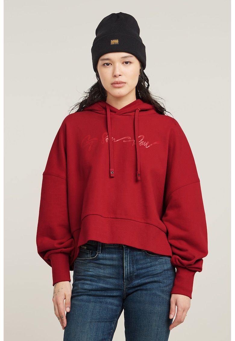 Caracteristici Tip produs: hanorac Culoare: rosu Imprimeu: logo Croiala: lejer Sistem inchidere: fara inchidere Material: bumbac organic Maneci: cazute Lungime maneca: maneca lunga Compozitie Exterior: 100% bumbac organic