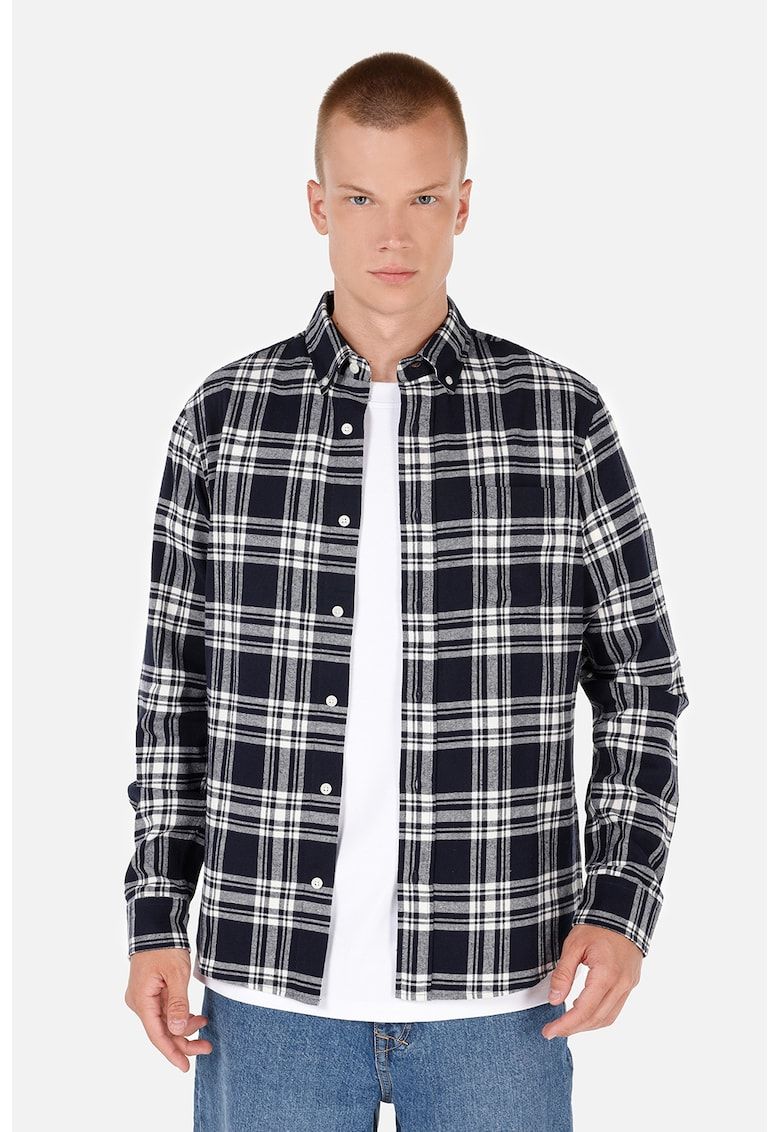 Caracteristici Culoare: alb - bleumarin Material: bumbac Imprimeu: carouri Stil: casual Croiala: regular fit Guler: oxford Lungime maneca: maneca lunga Sistem inchidere: nasturi Compozitie Exterior: 100% bumbac