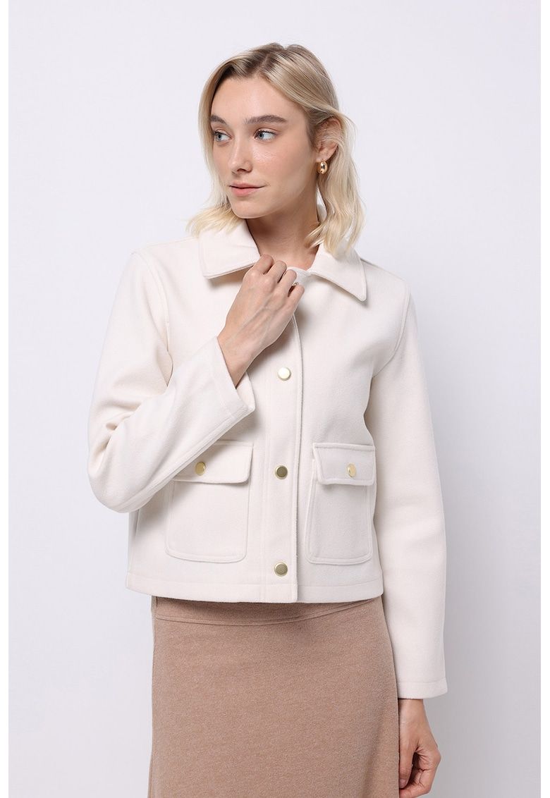 Caracteristici Tip produs: jacheta Culoare: alb Imprimeu: uni Material: sintetic - viscoza Croiala: regular fit Guler: clasic Gluga: fara gluga Lungime maneca: maneca lunga Buzunare: cu clape cu capse Sistem inchidere: capse Compozitie Exterior: 92% poliester - 8% viscoza