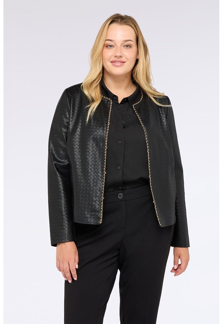 Caracteristici Tip produs: jacheta Culoare: auriu - negru Imprimeu: uni Material: viscoza Croiala: regular fit Gluga: fara gluga Lungime maneca: maneca lunga Detalii: disclaimer: acest produs este conceput pentru femeile cu forme ( marime plus). Compozitie Exterior: exterior 1: 100% viscoza - material exterior 2: 59% viscoza - 37% poliester - 4% elastan Captuseala: 100% poliester