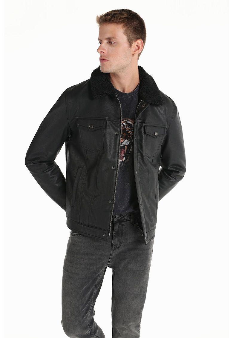 jacheta de piele ecologica cu garnitura de blana sintetica