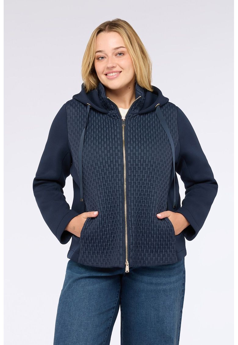 Caracteristici Tip produs: jacheta Culoare: bleumarin Imprimeu: uni Material: sintetic - viscoza Croiala: curvy Gluga: cu gluga Lungime maneca: maneca lunga Buzunare: laterale Detalii: acest produs se adreseaza femeilor cu forme pline (plus size). Sistem inchidere: fermoar Compozitie Exterior: 68% poliester - 26% viscoza - 6% elastan Captuseala: 100% poliamida Umplutura: 100% poliester Material garnituri: 100% poliamida