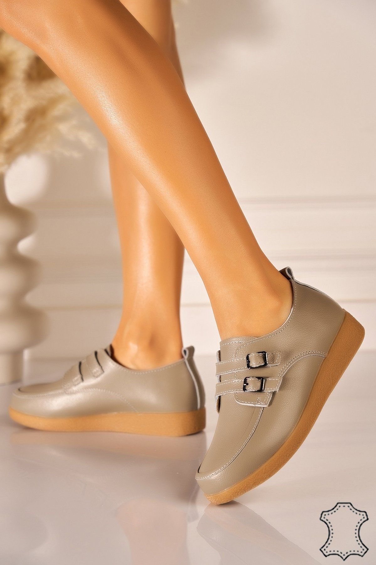mocasini dama piele naturala gri vaeda