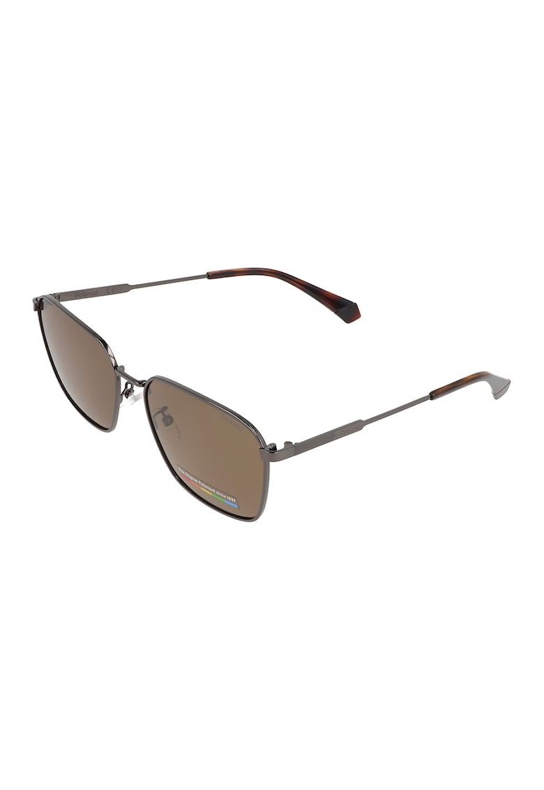 Caracteristici Stil: dreptunghiular Culoare: argintiu inchis Culoare lentila: maro Tip lentila: polarizata Protectie UV: 400 Detalii: a se evita socurile termice si mecanice - zgarierea - contactul cu alcool - parfum - acetona - detergent - suprafete abrazive. Ambalaj: produsul se livreaza in ambalaj personalizat. Compozitie Material rama: metal Material lentile: policarbonat Dimensiuni Latime lentila: 59 mm Marime punte nazala: 17 mm Lungime brat: 145 mm