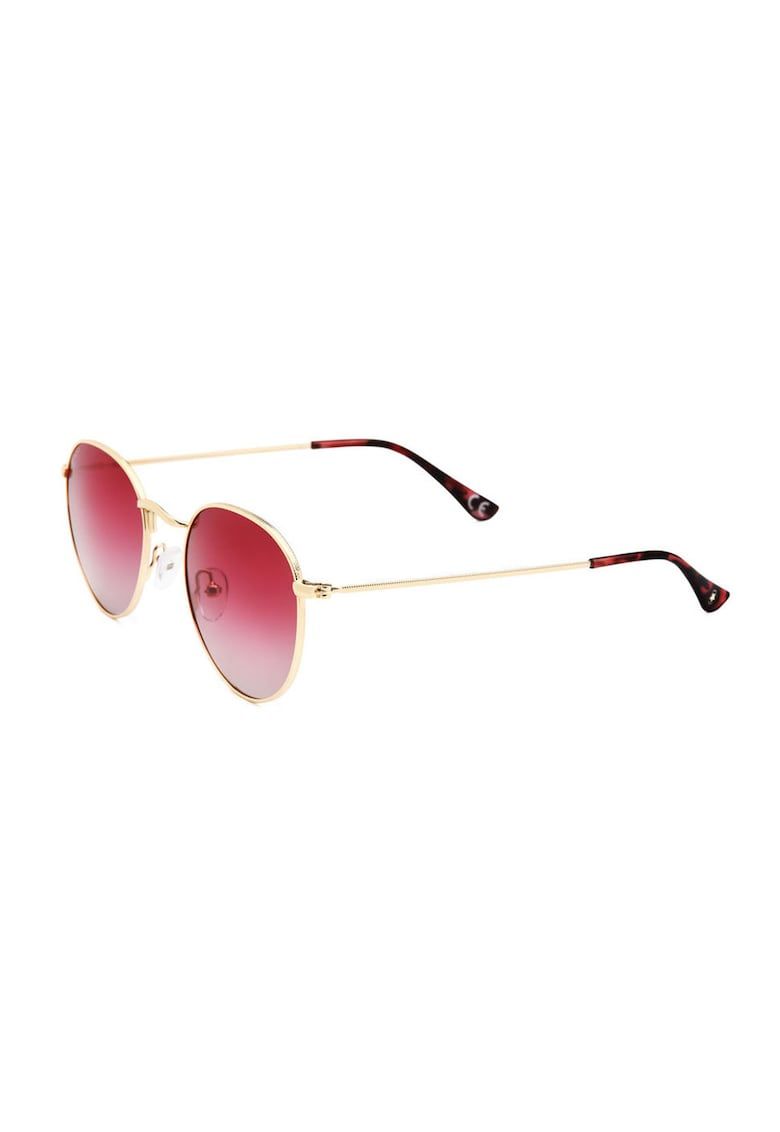 Caracteristici Stil: rotund Culoare: rosu - auriu Culoare lentila: rosu in degrade Tip lentila: polarizata Culoare rama: auriu Protectie UV: 400 Detalii: evitati impactul - zgarierea - contactul cu alcool - parfum - acetona - detergent - suprafete abrazive. Ambalaj: produsul se livreaza in ambalaj personalizat. Compozitie Material rama: metal Material lentile: plastic Dimensiuni Latime lentila: 50 mm Marime punte nazala: 21 mm Lungime brat: 145 mm