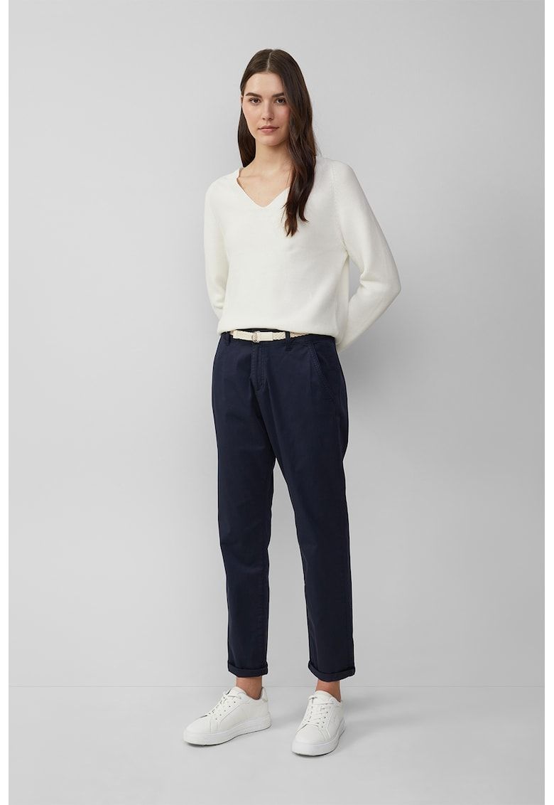 Caracteristici Culoare: albastru inchis Stil: casual Material: sintetic - bumbac Imprimeu: uni Croiala: dreapta Lungime: crop Talie: medie Buzunare: laterale Sistem inchidere: fermoar Compozitie Exterior: 98% bumbac - 2% elastan
