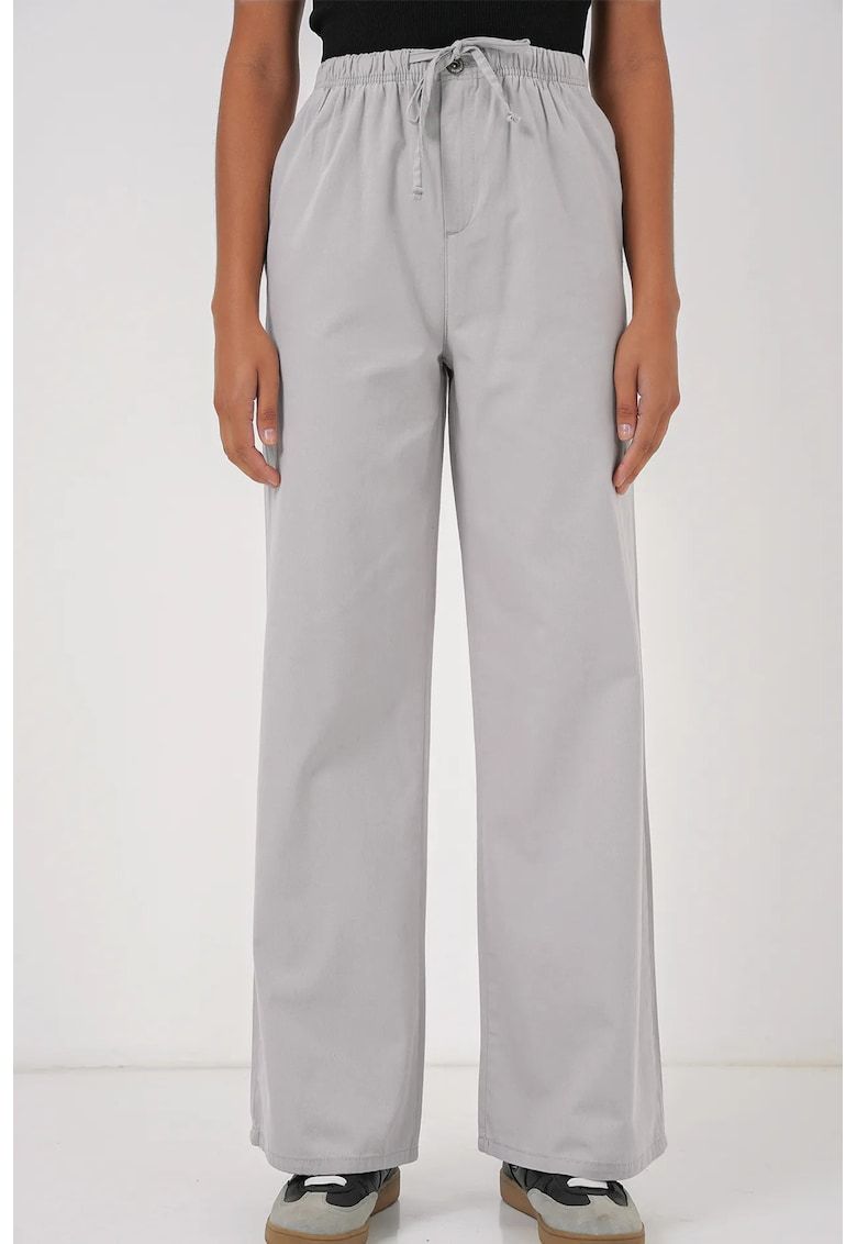 pantaloni dama - largi din bumbac cu talie inalta si snur - gri