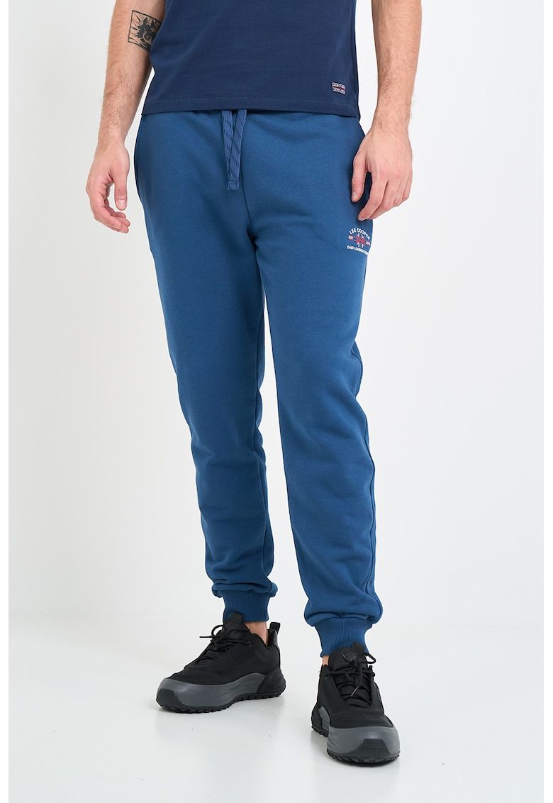 Caracteristici Culoare: albastru inchis Imprimeu: uni Material: poliester - bumbac Stil: casual Croiala: regular fit Talie: medie Buzunare: 2 oblice - unul aplicact pe partea din spate Lungime: lungi Detalii: banda elastica in talie cu snur pentru ajustare Sistem inchidere: fara inchidere Compozitie Exterior: 80% bumbac - 20% poliester