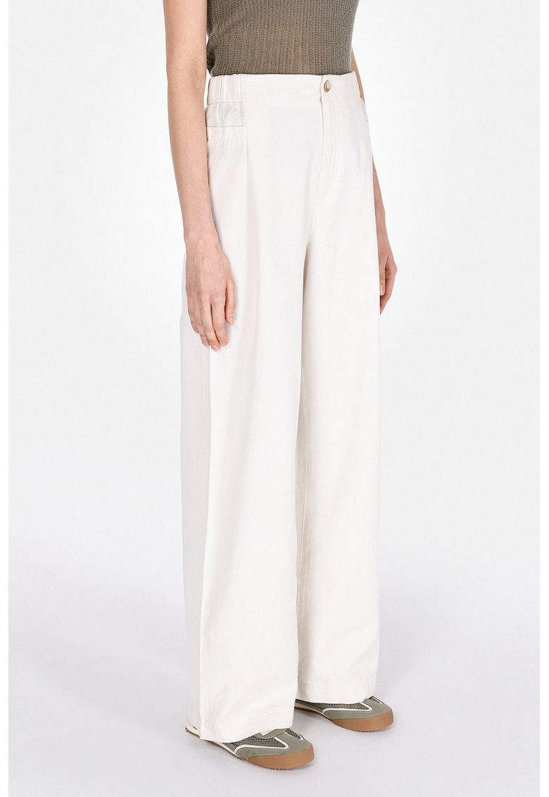 Caracteristici Culoare: alb murdar Stil: casual Material: bumbac - in Imprimeu: uni Croiala: croiala ampla Lungime: lungi Talie: medie Sistem inchidere: fara inchidere Compozitie Exterior: 55% in - 25% bumbac - 20% poliester