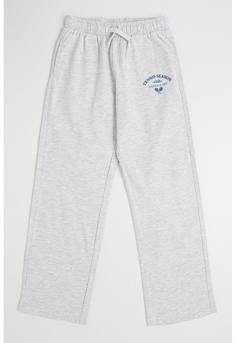 Caracteristici Tip produs: pantaloni lungi Culoare: gri deschis melange Material: bumbac Stil: casual Imprimeu: text Croiala: regular fit Talie: medie Buzunare: 2 oblice laterale Colectie: primavara - vara - toamna - iarna Compozitie Exterior: 100% bumbac