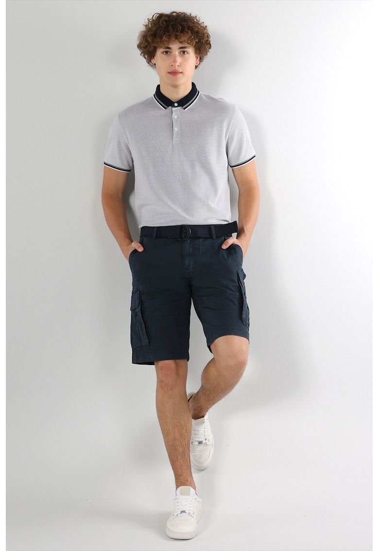 Caracteristici Culoare: bleumarin Imprimeu: uni Material: bumbac - elastan Stil: casual Croiala: regular fit Talie: joasa Buzunare: laterale - cu clapa Lungime: scurti Sistem inchidere: fermoar Compozitie Exterior: 98% bumbac - 2% elastan