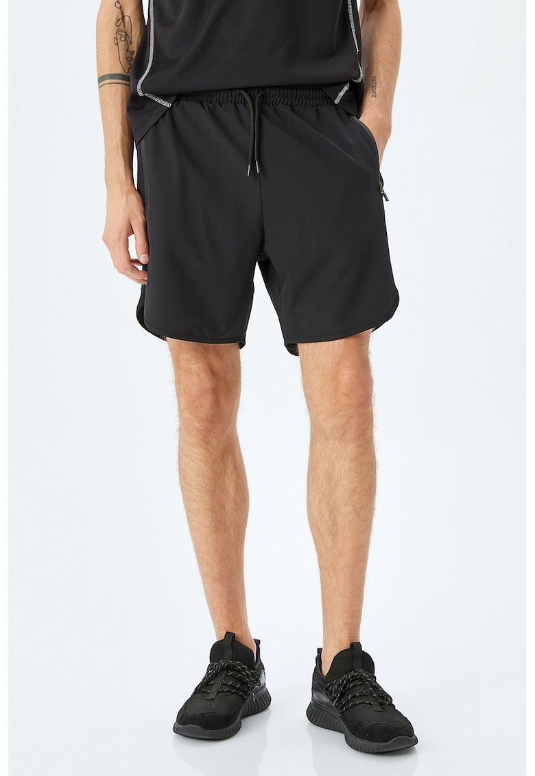 Caracteristici Culoare: negru Imprimeu: uni Material: poliester - elastan Stil: casual Croiala: regular fit Talie: medie Buzunare: 2 oblice laterale Lungime: scurti Compozitie Exterior: 88% poliester - 12% elastan