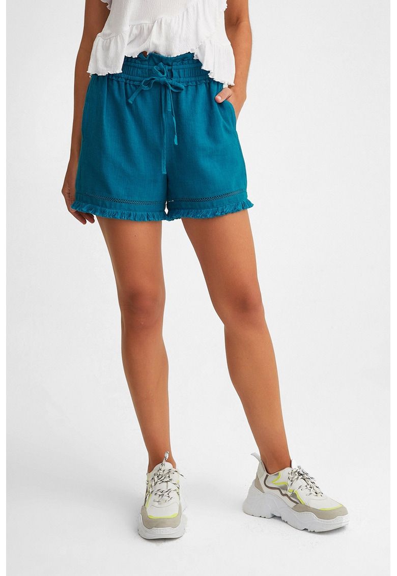 Caracteristici Culoare: albastru petrol Stil: casual Material: poliester - bumbac Imprimeu: uni Croiala: regular fit Lungime: scurti Talie: inalta Compozitie Exterior: 70% viscoza - 30% bumbac