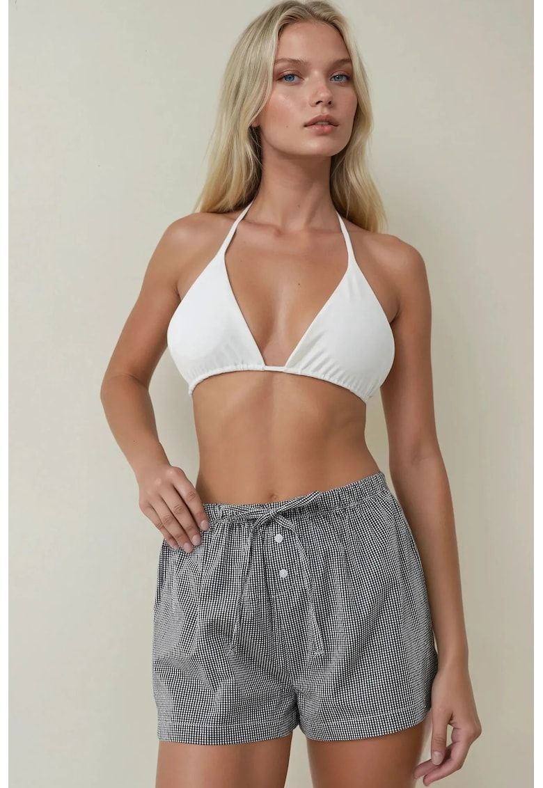 pantaloni scurti dama - cu dungi - croiala lejera - negru - poliester-poliuretan