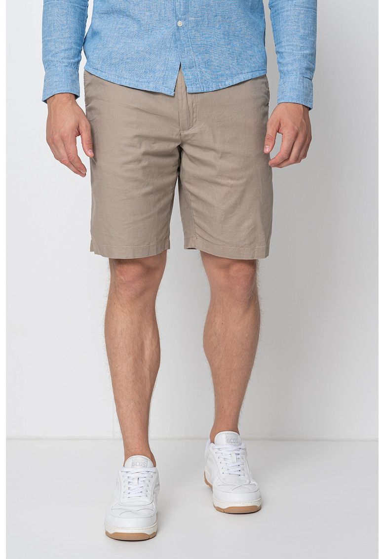 Caracteristici Culoare: maro deschis Imprimeu: uni Material: bumbac - in Stil: casual Croiala: regular fit Talie: joasa Lungime: scurti Sistem inchidere: fermoar Compozitie Exterior: 85% bumbac - 15% in Info model Modelul poarta un produs de marimea M. Marimi model: 191 cm inaltime - 99 cm bust - 80 cm talie - 101 cm sold