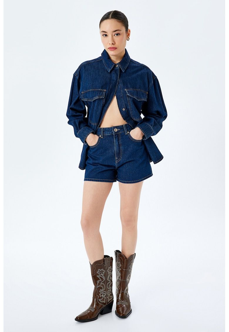pantaloni scurti din denim cu talie inalta