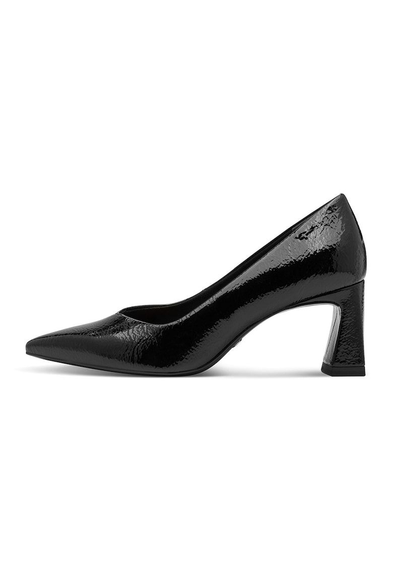 Caracteristici Tip: cu toc Material: piele ecologica Culoare: negru Imprimeu: uni Stil: elegant Varf: ascutit Tip toc: masiv Detalii: aspect lacuit Sistem inchidere: fara inchidere Compozitie Partea superioara: alte materiale Material interior: alte materiale - textil - piele Material talpa: alte materiale Dimensiuni Inaltime toc: 6.5 cm