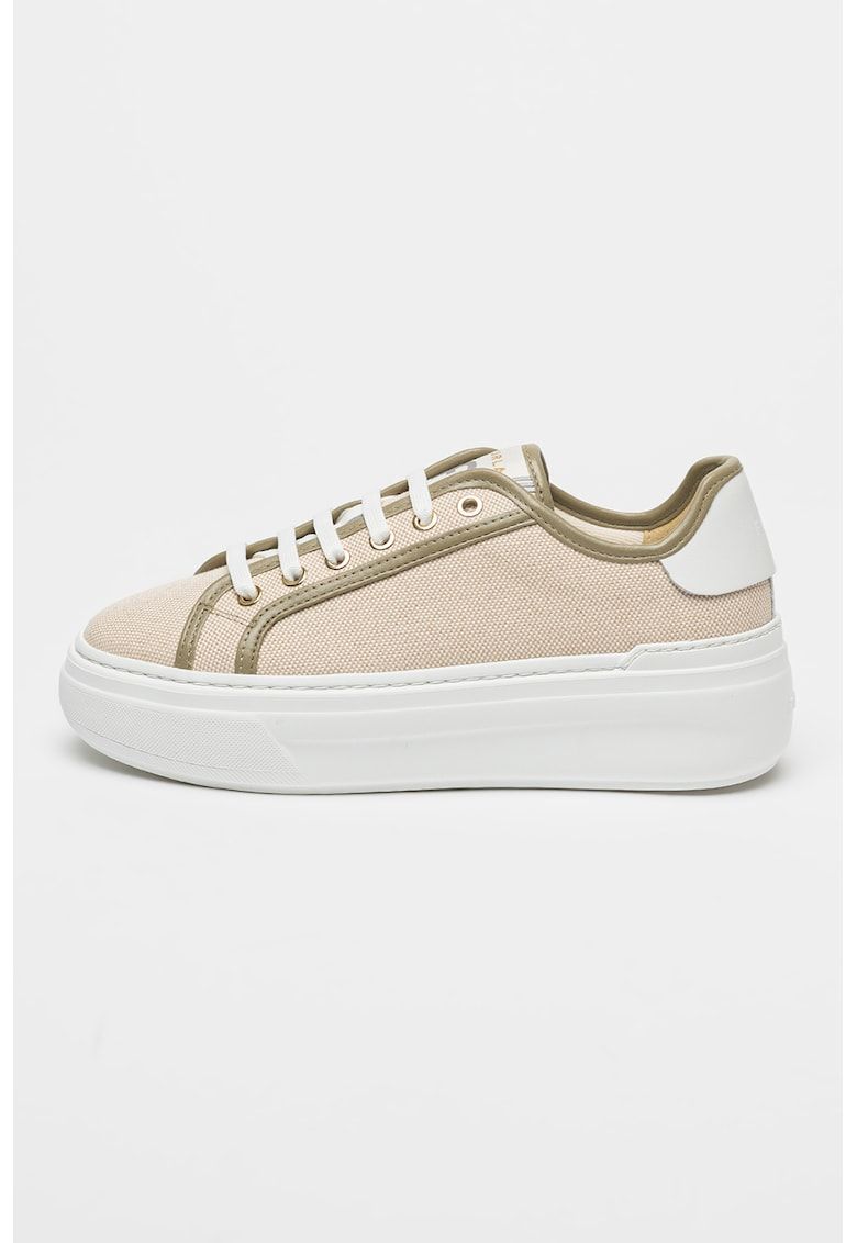 Caracteristici Culoare: alb - bej inchis Varf: rotund Imprimeu: logo Tip talpa: plata Material: textil - piele naturala Stil: casual Sistem inchidere: siret Compozitie Partea superioara: piele - textil Material interior: piele naturala - textil Material talpa: alte materiale