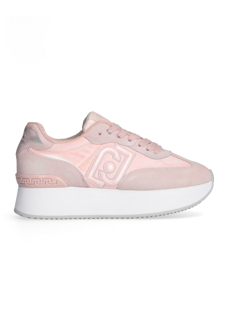 pantofi sport cu talpa flatform si garnituri din piele intoarsa