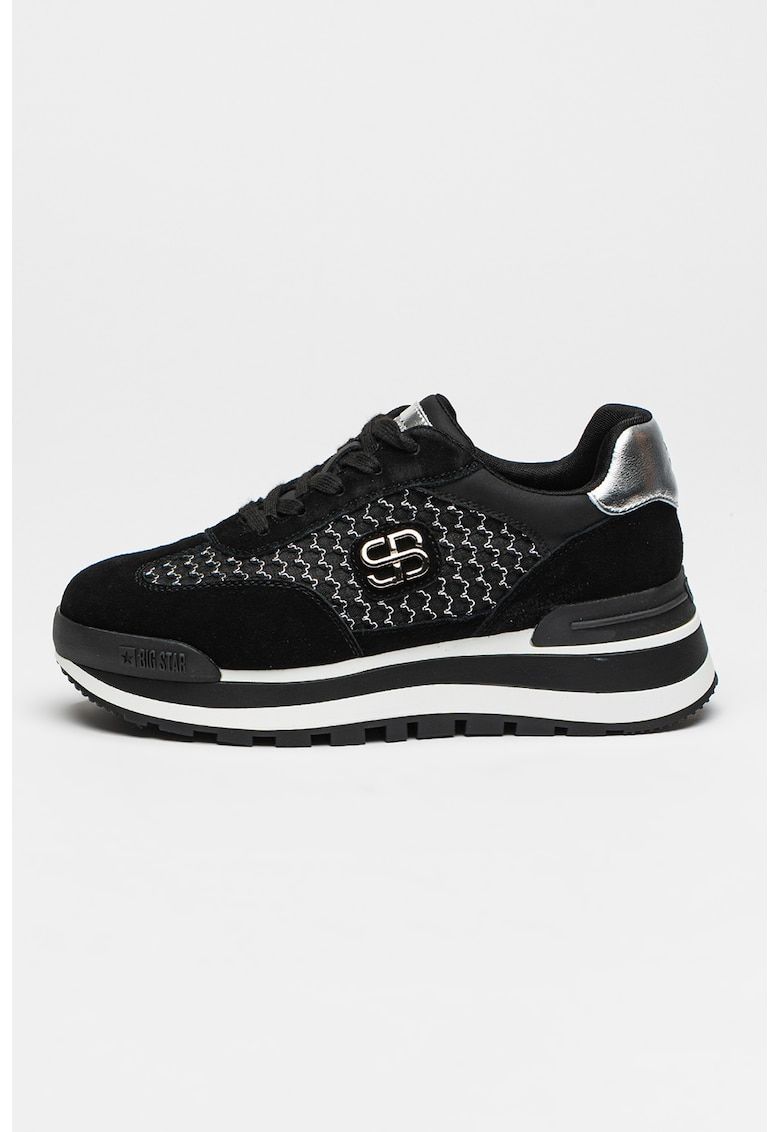 pantofi sport cu talpa wedge si garnituri din piele intoarsa