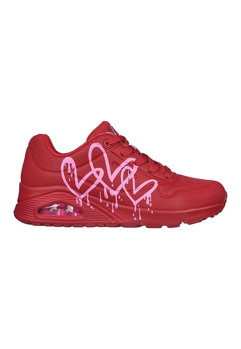 Caracteristici Culoare: rosu Varf: rotund Imprimeu: cu model Tip talpa: plata Detalii: perforatii - imprimeu contrastant Material: textil - piele ecologica Stil: casual Sistem inchidere: siret Compozitie Partea superioara: alte materiale - material textil Material interior: textil Material talpa: alte materiale