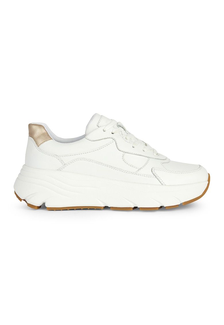 Caracteristici Culoare: alb - auriu Varf: rotund Imprimeu: uni Tip talpa: plata Tehnologie: geox respira® Material: piele naturala Stil: casual Sistem inchidere: siret Compozitie Partea superioara: material textil - piele Material interior: textil Material talpa: alte materiale