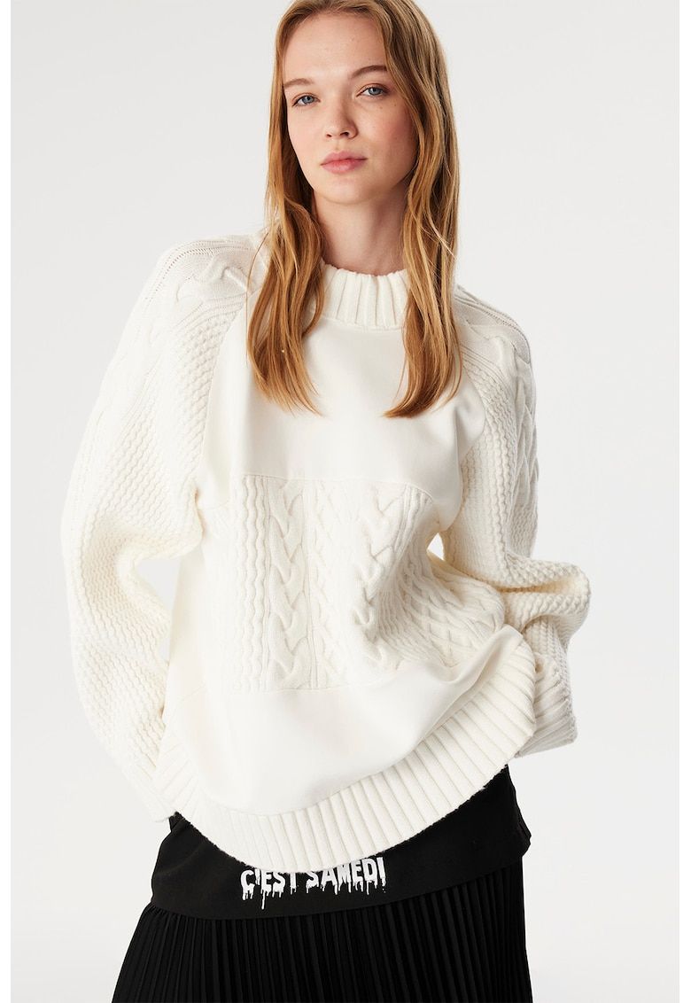pulover cu decolteu la baza gatului si model torsade