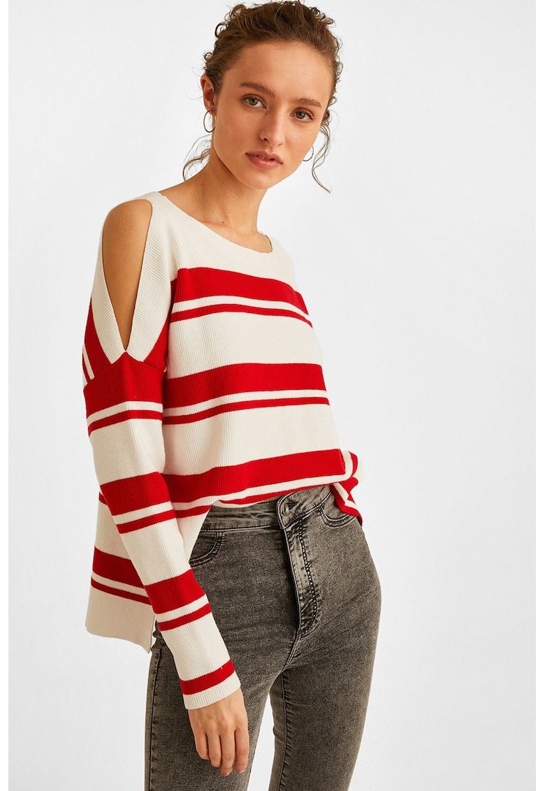 Caracteristici Tip produs: pulover Culoare: rosu - alb Imprimeu: dungi Material: viscoza - poliamida Model: rotund Croiala: regular fit Sistem inchidere: fara inchidere Lungime maneca: maneca lunga Compozitie Exterior: 72% viscoza - 28% poliester