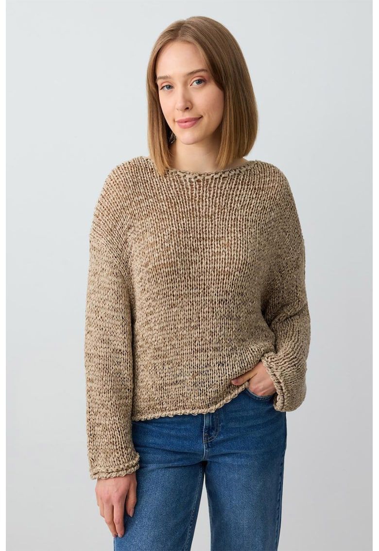 Caracteristici Tip produs: pulover Culoare: bej Imprimeu: uni Material: sintetic Model: rotund Croiala: regular fit Sistem inchidere: fara inchidere Lungime maneca: maneca lunga Tip maneca: ampla Compozitie Exterior: 78% acrilic - 22% poliester