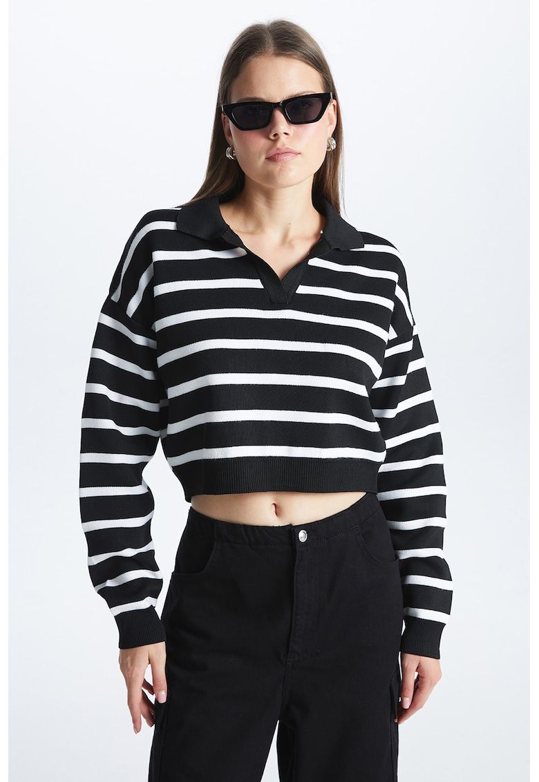 pulover cu maneci cazute si model in dungi
