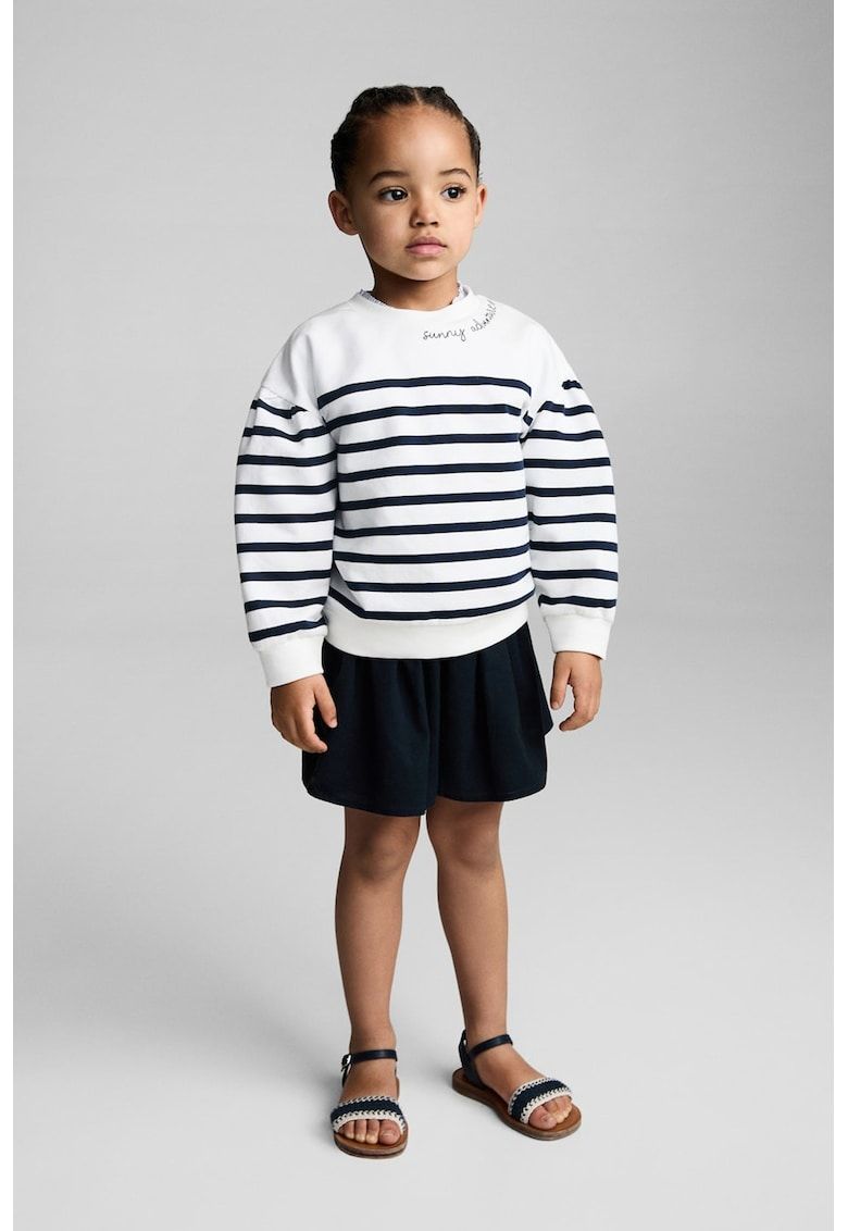 Caracteristici Tip produs: pulover Culoare: alb - bleumarin Material: bumbac Imprimeu: dungi Decolteu: la baza gatului Lungime maneca: maneca lunga Colectie: primavara - vara - toamna - iarna Compozitie Exterior: 100% bumbac