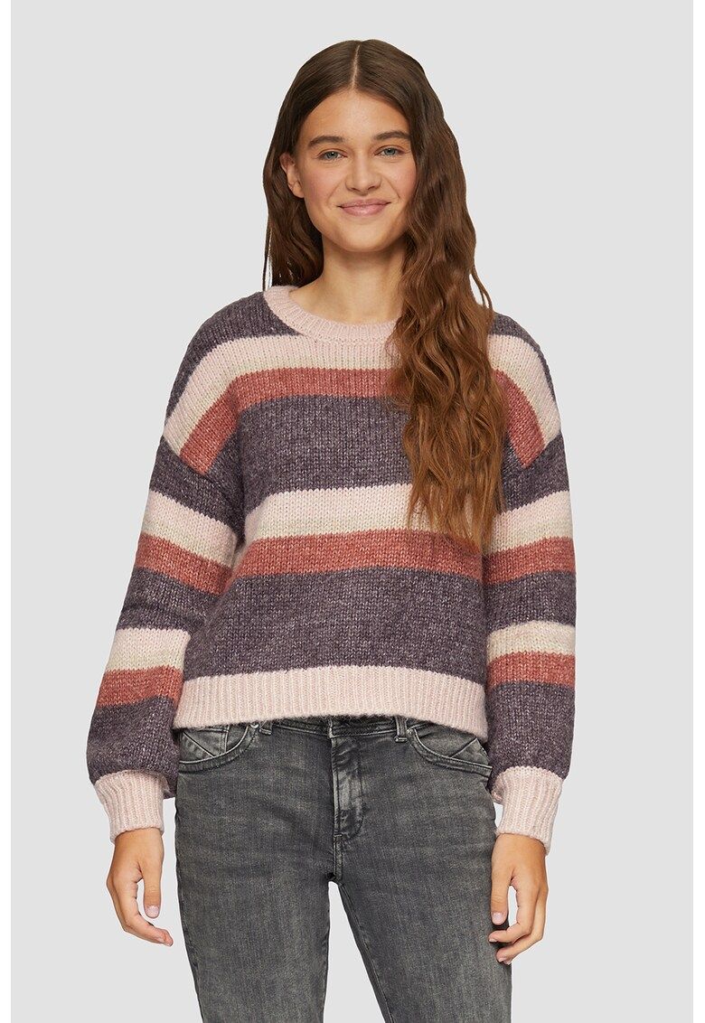 Caracteristici Tip produs: pulover Culoare: bej - caramiziu - albastru violet Imprimeu: dungi Material: poliester - poliamida - acril Model: decolteu la baza gatului Croiala: regular fit Sistem inchidere: fara inchidere Lungime maneca: maneca lunga Compozitie Exterior: 50% poliester - 32% acril - 18% poliamida