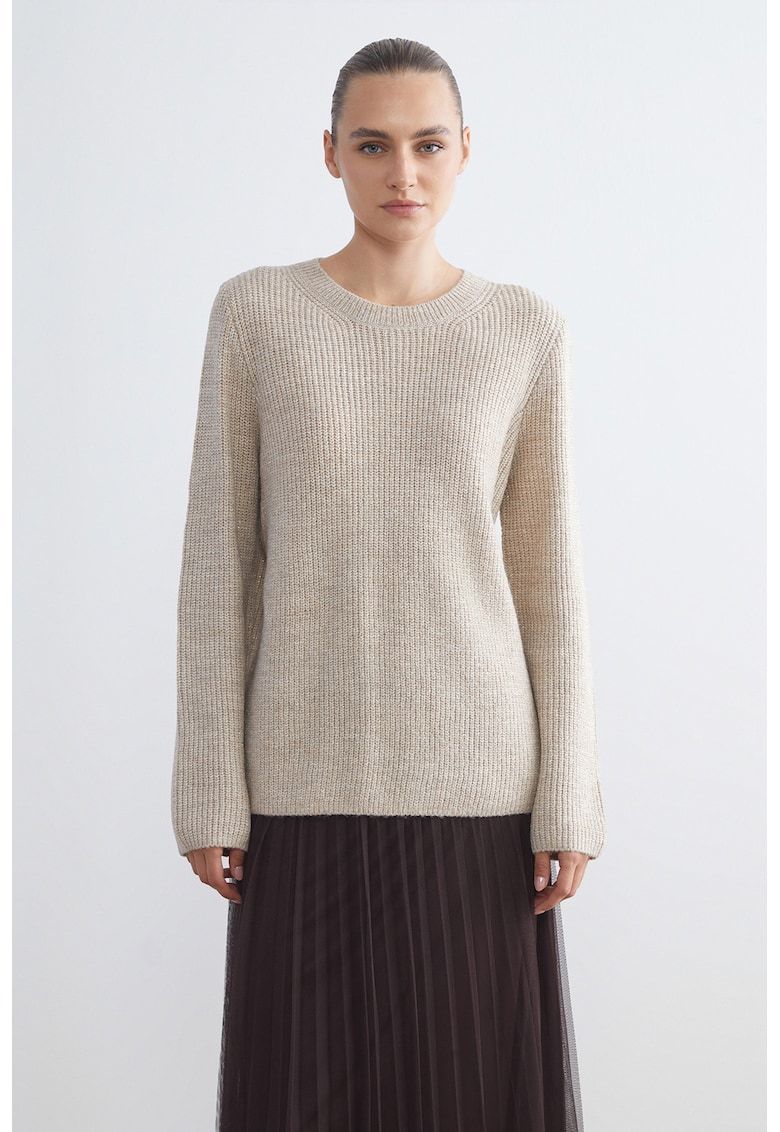 Caracteristici Tip produs: pulover Culoare: bej deschis melange Imprimeu: uni Material: poliester - acril Model: decolteu la baza gatului Croiala: regular fit Sistem inchidere: fara inchidere Decolteu: la baza gatului Lungime maneca: maneca lunga Compozitie Exterior: 58% poliester - 39% acrilic - 3% fibre metalizate