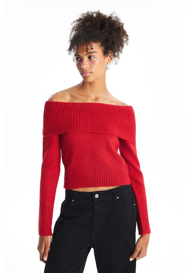 pulover cu model uni si decolteu pe umeri